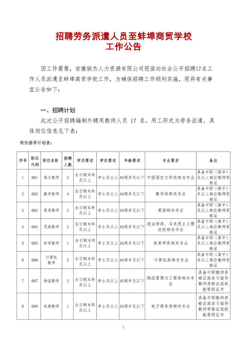2021年蚌埠商貿學校招聘勞務派遣人員工作公告