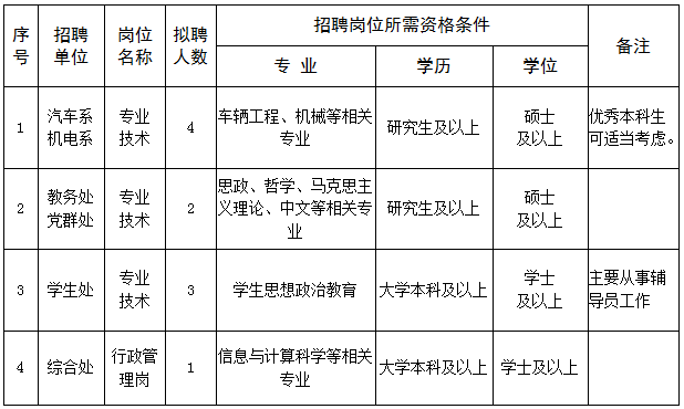 2021年安徽汽車職業(yè)技術(shù)學(xué)院校園招聘啟事