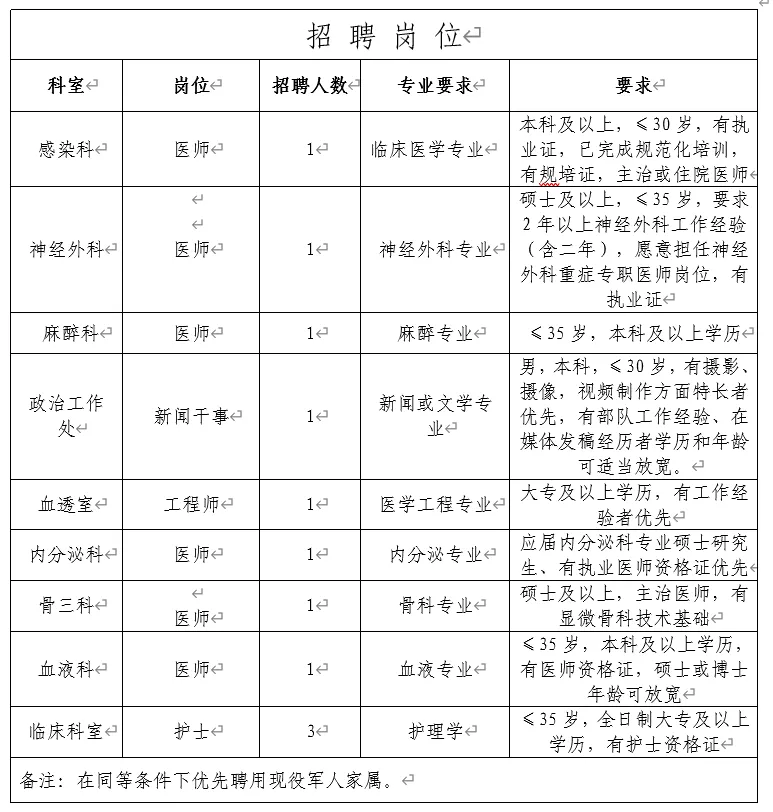醫(yī)院根據(jù)工作需要,招聘第二批醫(yī)療、護理等部分崗位若干名。(具體見下表)