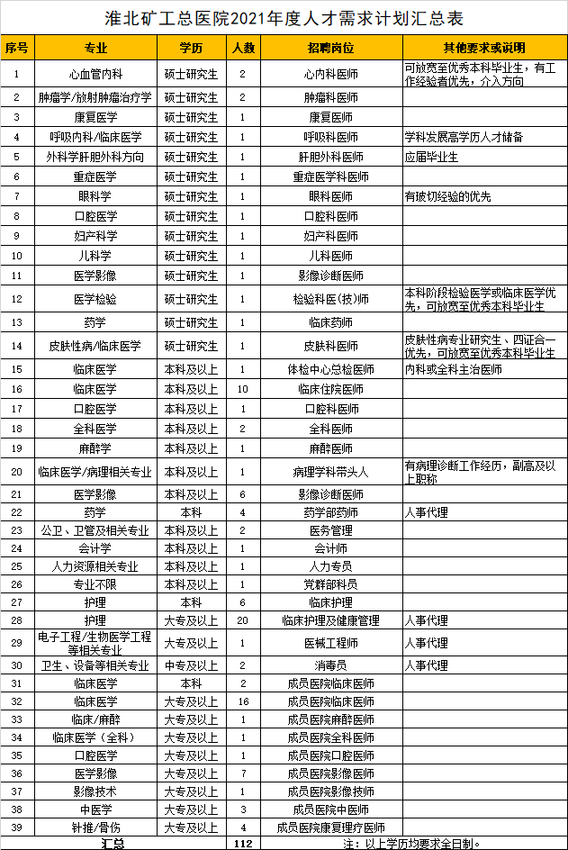 2021年淮北礦工總醫(yī)院人才招聘計劃(2021年2月修訂)