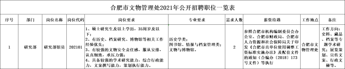 因工作需要,合肥市文物管理處面向社會公開招聘2名工作人員。具體如下: