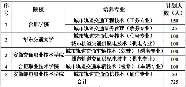 2021年合肥市軌道交通集團有限公司合作院校定向班招生公告