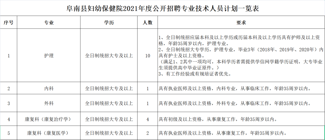 附件:《阜南縣婦幼保健院2021年公開招聘專業(yè)技術(shù)人員計(jì)劃一覽表》