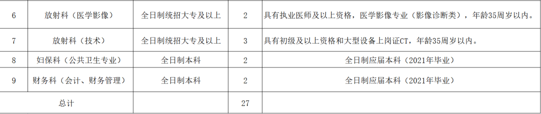 符合臨床專業(yè)全日制統(tǒng)招碩士及以上學(xué)歷或具有臨床專業(yè)副主任醫(yī)師及以上資格,享受縣政府人才引進(jìn)相關(guān)政策待遇。