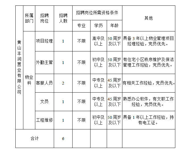 2021年黃山豐潤置業(yè)有限公司招聘工作人員公告