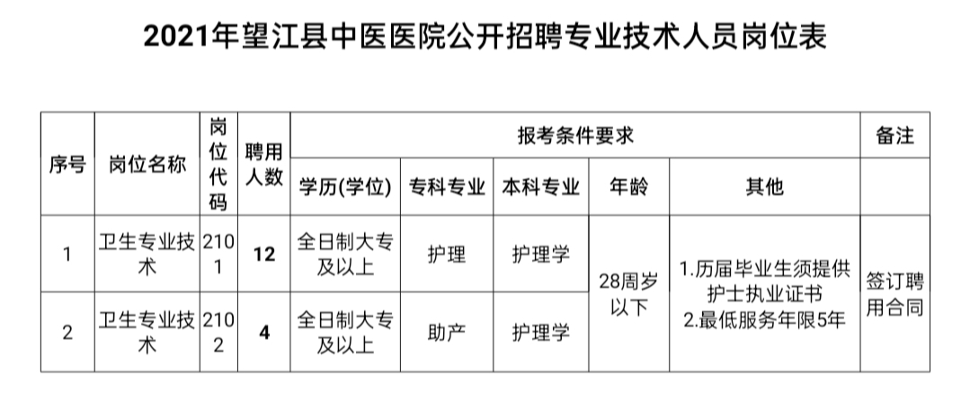 1、2021年望江縣中醫(yī)醫(yī)院公開招聘專業(yè)技術(shù)人員崗位表