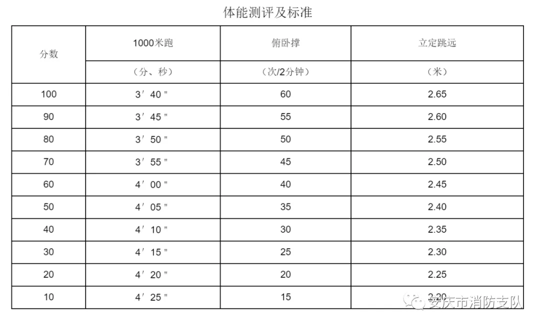 3、體能測(cè)評(píng)成績:測(cè)試成績采取從高到低排名,換算為對(duì)應(yīng)的百分制成績測(cè)算,滿分為100分,體能測(cè)評(píng)三個(gè)項(xiàng)目必須達(dá)標(biāo)(60分)。