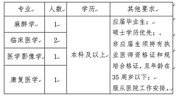 2021-07-22 19:05:12閱讀()銅陵市第四人民醫(yī)院根據(jù)醫(yī)院業(yè)務(wù)發(fā)展的需要,現(xiàn)面向社會(huì)公開(kāi)招聘5人,具體公告如下:
