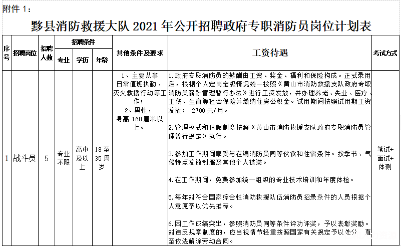 本次共招聘政府專職消防員5名(詳見附件1)。