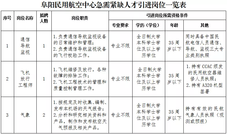 根據(jù)阜陽民航快速發(fā)展需要,阜陽民用航空中心現(xiàn)面向社會公開引進3個崗位4名急需緊缺人才,現(xiàn)公告如下: