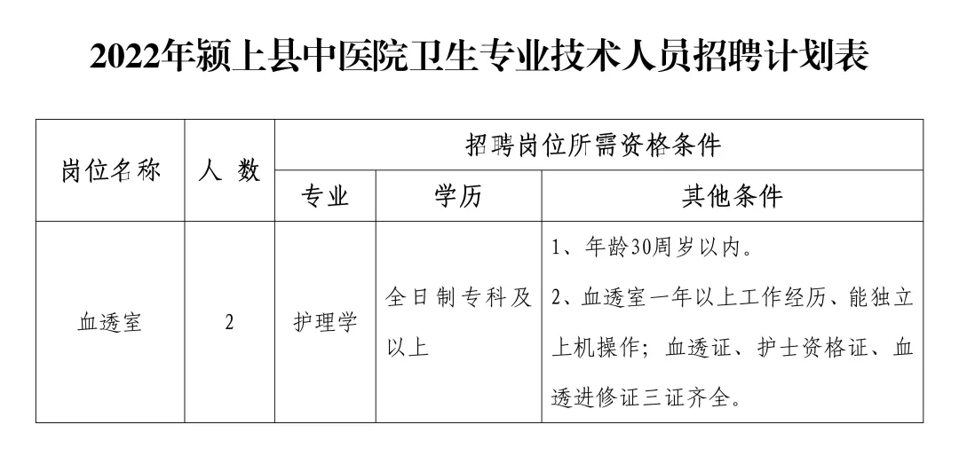 因業(yè)務(wù)發(fā)展需要,經(jīng)研究,特招聘血透專業(yè)護(hù)理人員2人?,F(xiàn)將有關(guān)事項(xiàng)公告如下: