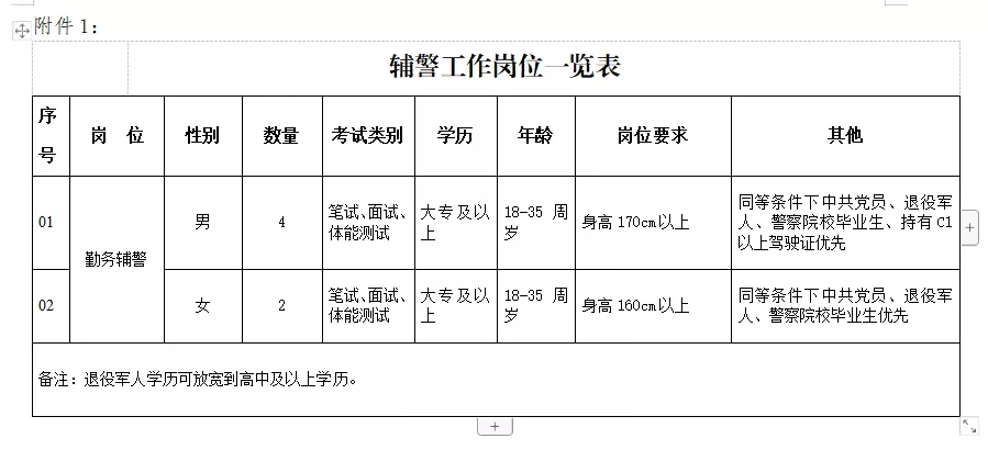 計(jì)劃招錄6名警務(wù)輔助人員,男性4名,女性2名。