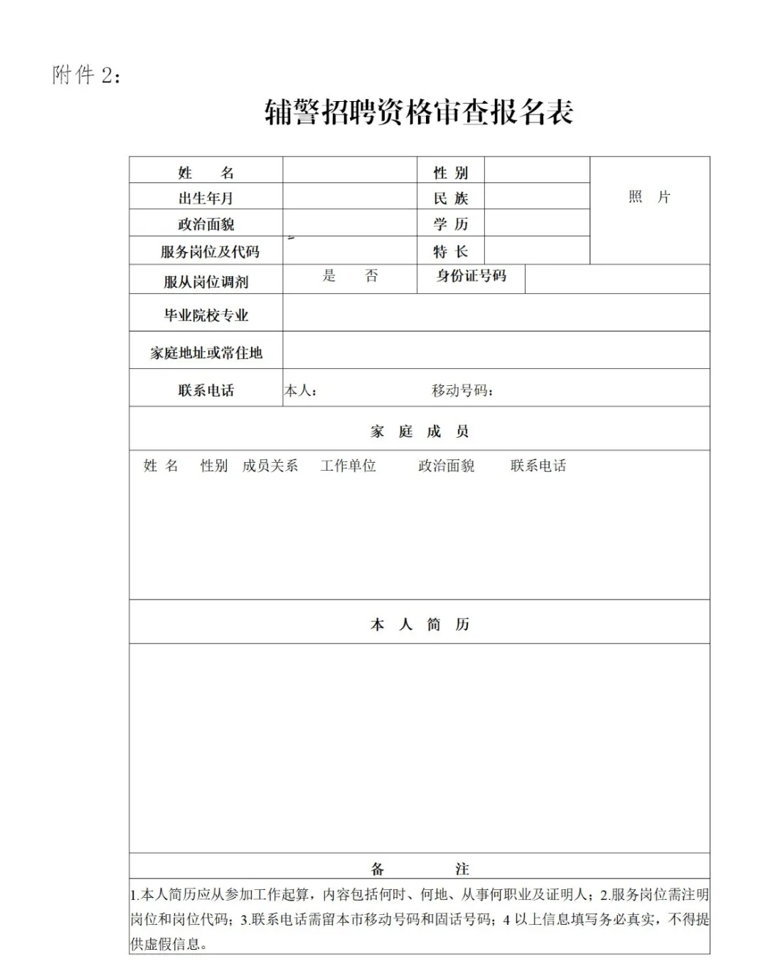 3.報(bào)名方式:以現(xiàn)場報(bào)名的方式進(jìn)行。報(bào)名時(shí)應(yīng)攜帶本人身份證、戶口薄、學(xué)歷證明的原件和復(fù)印件、近期2寸免冠彩色照片2張及《警務(wù)輔助人員報(bào)名表》(見附件2,請自行下載并填寫完整)。