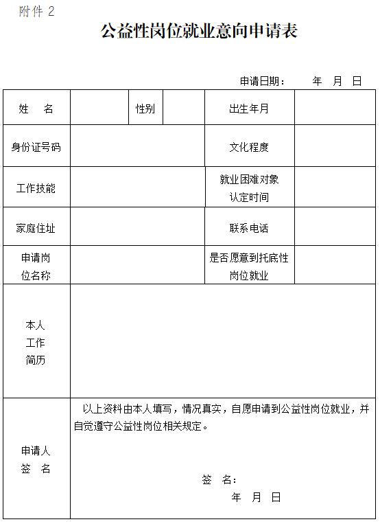 附件2:公益性崗位就業(yè)意向申請(qǐng)表