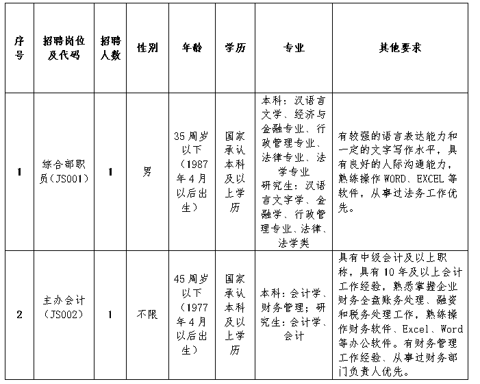 二、招聘崗位及要求