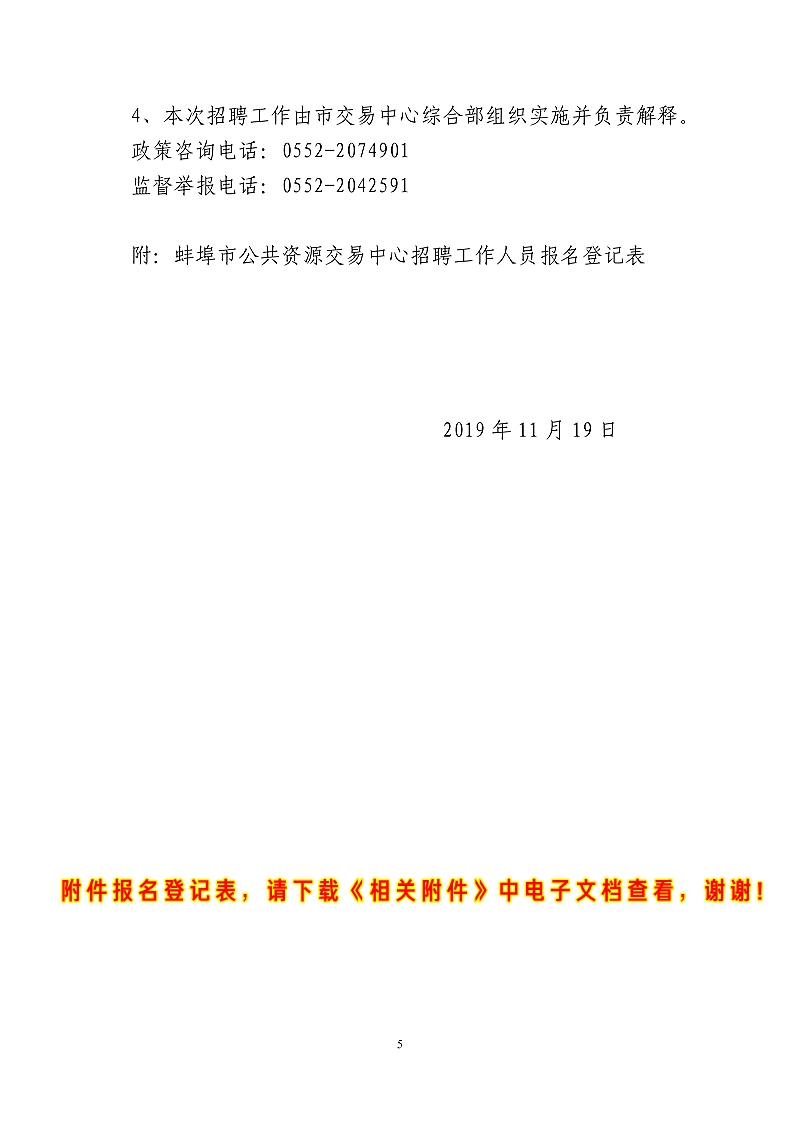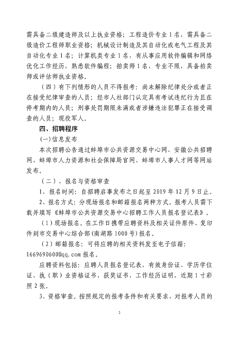2019年下半年蚌埠市公共資源交易中心公開招聘編制外工作人員公告