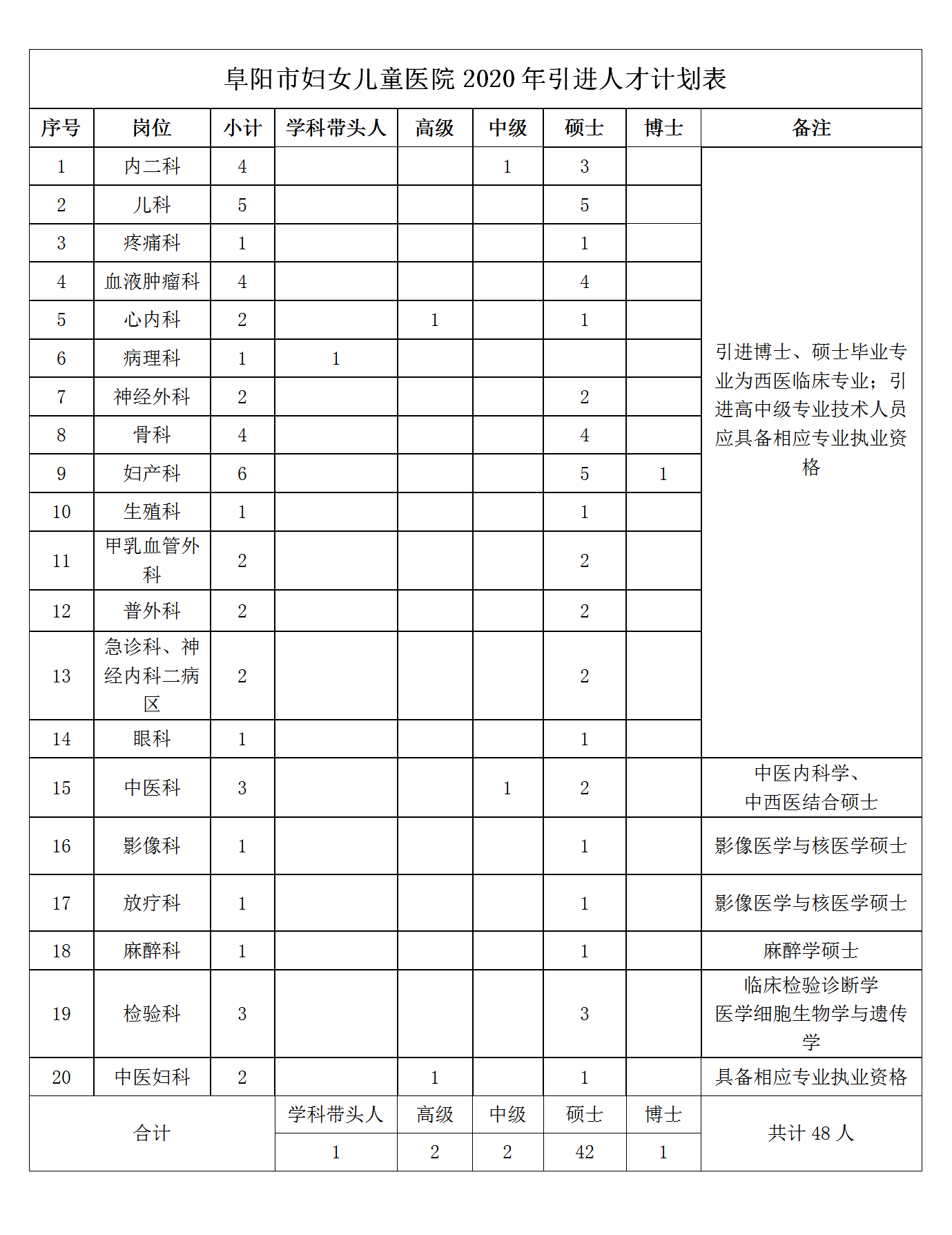 附件:阜陽市婦女兒童醫(yī)院2020年引進(jìn)人才計劃表