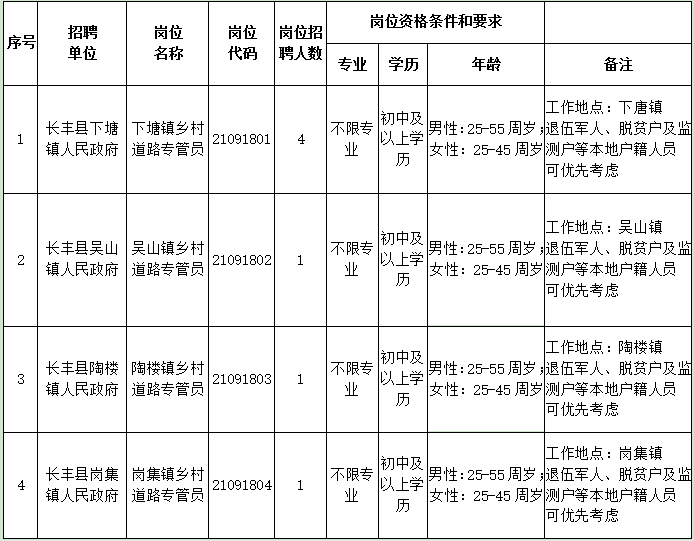 6.原則上不跨越鄉(xiāng)鎮(zhèn)(區(qū))招募,就近從轄區(qū)內常住人員中選聘。退伍軍人、脫貧戶及監(jiān)測戶等本地戶籍人員可優(yōu)先考慮。