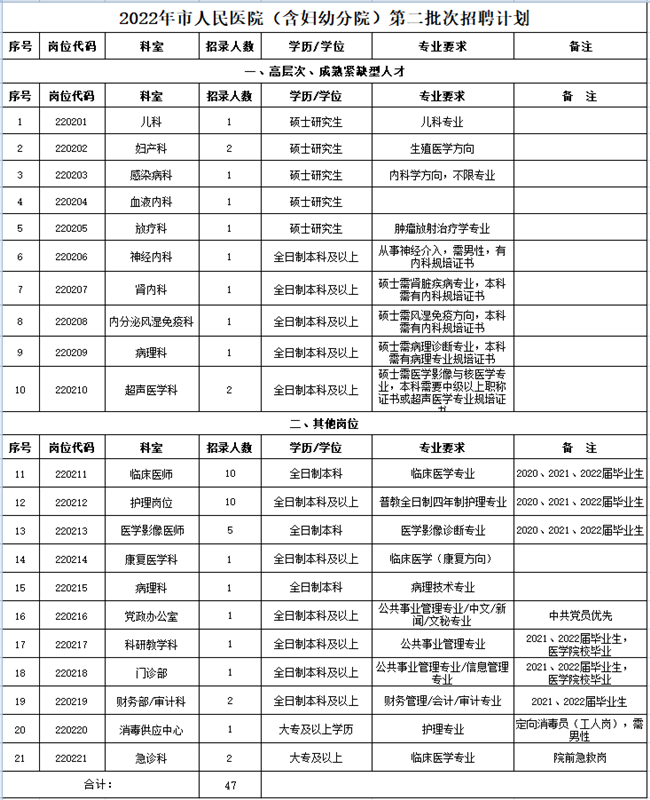 2022-05-26 20:22:23閱讀()宣城市人民醫(yī)院為滿足市人民醫(yī)院及市婦幼保健院發(fā)展需要,加強人才隊伍建設(shè),按照公開、平等、競爭、擇優(yōu)的原則,面向社會公開招聘工作人員,現(xiàn)將有關(guān)事項通知如下: