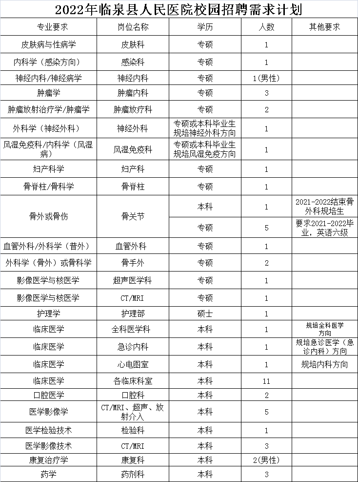 2022年阜陽臨泉縣人民醫(yī)院校園招聘專業(yè)技術人員公告