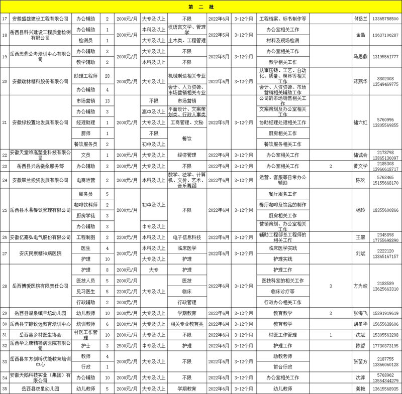 附件:《2022年度岳西縣就業(yè)見(jiàn)習(xí)招募崗位計(jì)劃(第二批)》(含第一批未招滿)