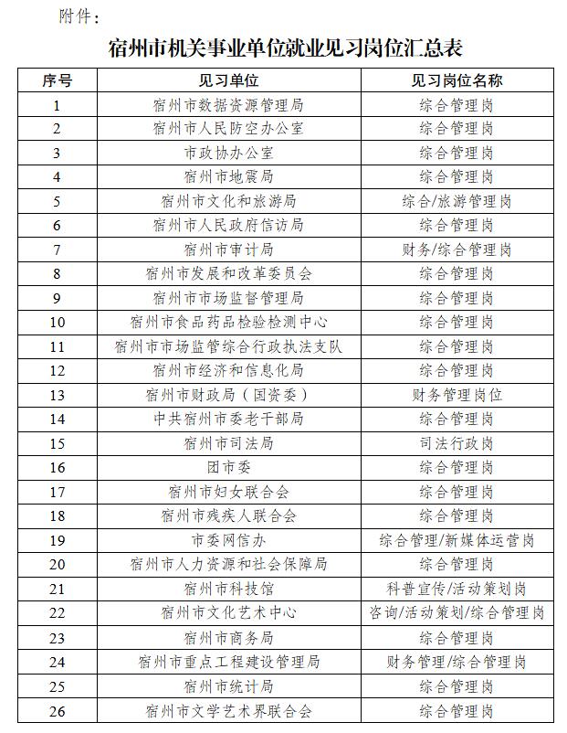 附件:宿州市機關事業(yè)單位就業(yè)見習崗位匯總表