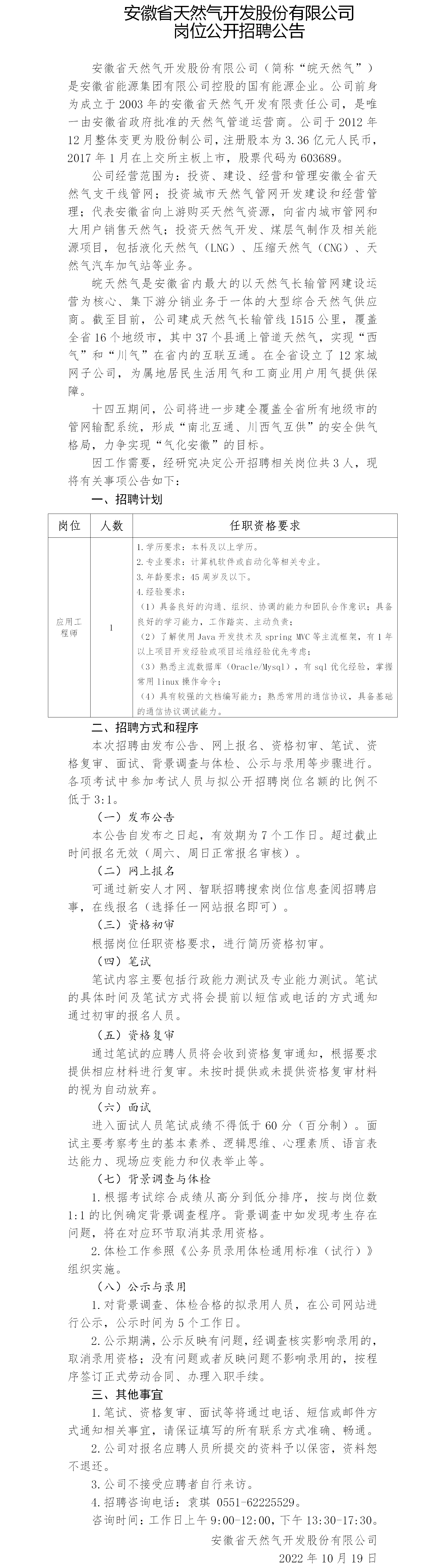 2022年安徽省天然氣開發(fā)股份有限公司崗位公開招聘公告
