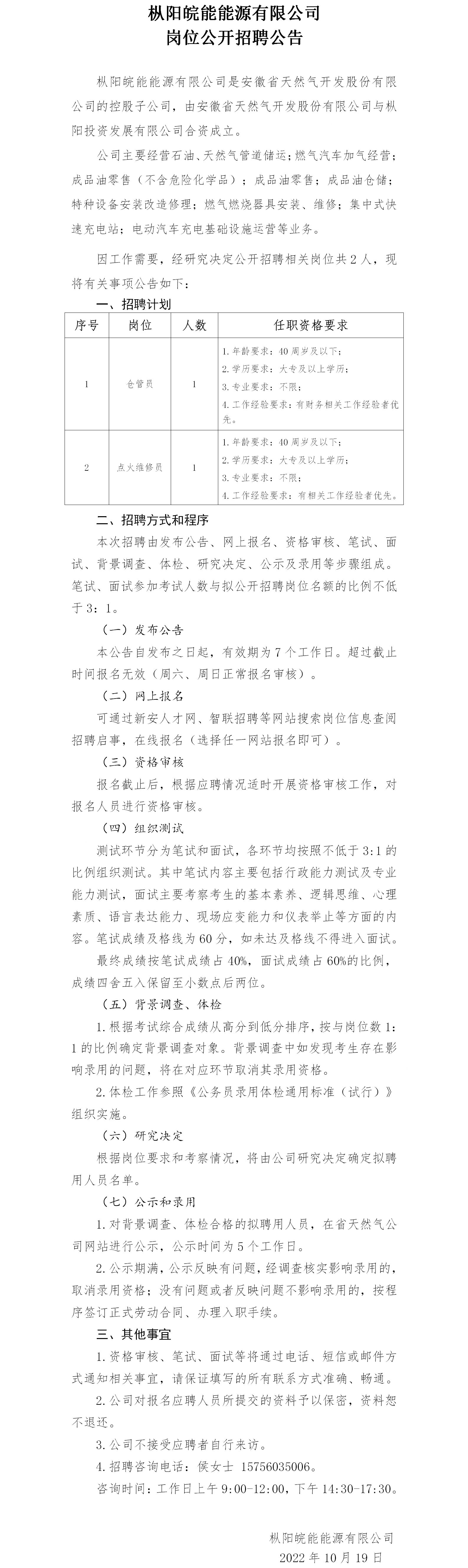 2022年銅陵樅陽皖能能源有限公司崗位公開招聘公告