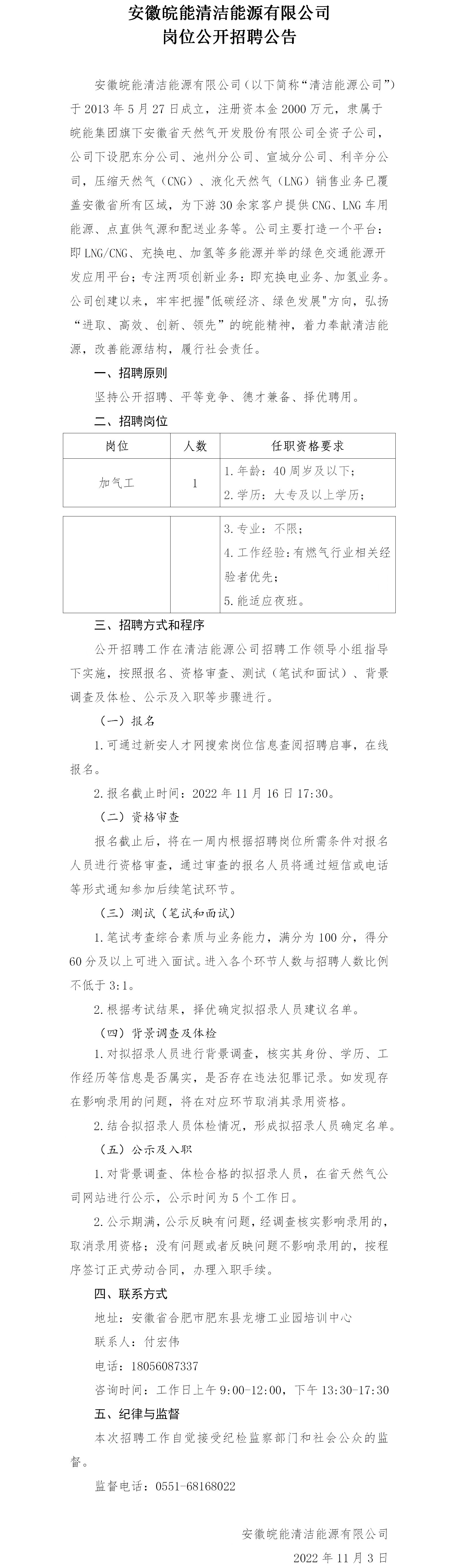 2022年安徽皖能清潔能源有限公司崗位公開(kāi)招聘公告