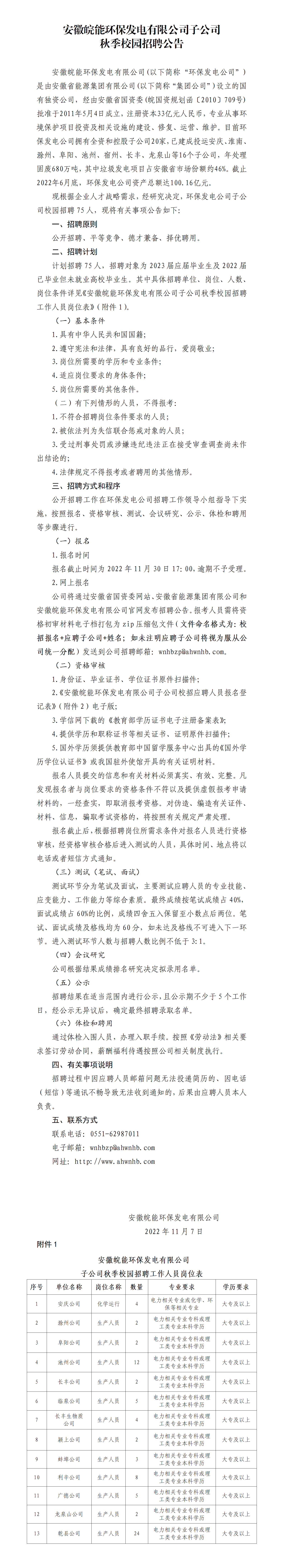 2022年安徽皖能環(huán)保發(fā)電有限公司子公司秋季校園招聘公告