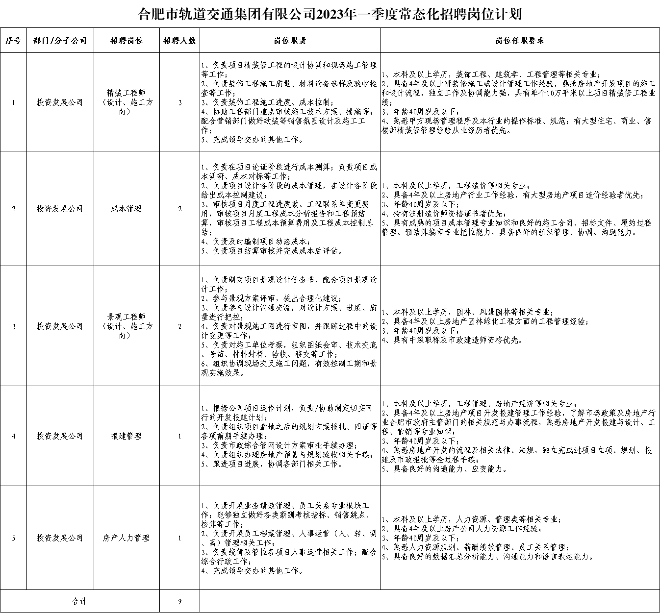 2023年一季度合肥市軌道交通集團(tuán)有限公司常態(tài)化招聘公告