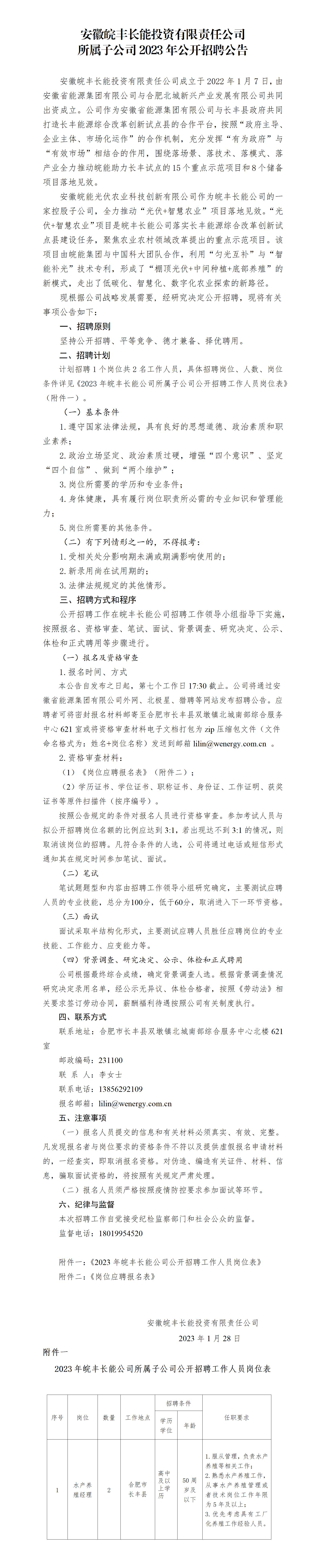 2023年安徽皖豐長(zhǎng)能投資有限責(zé)任公司所屬子公司公開(kāi)招聘公告
