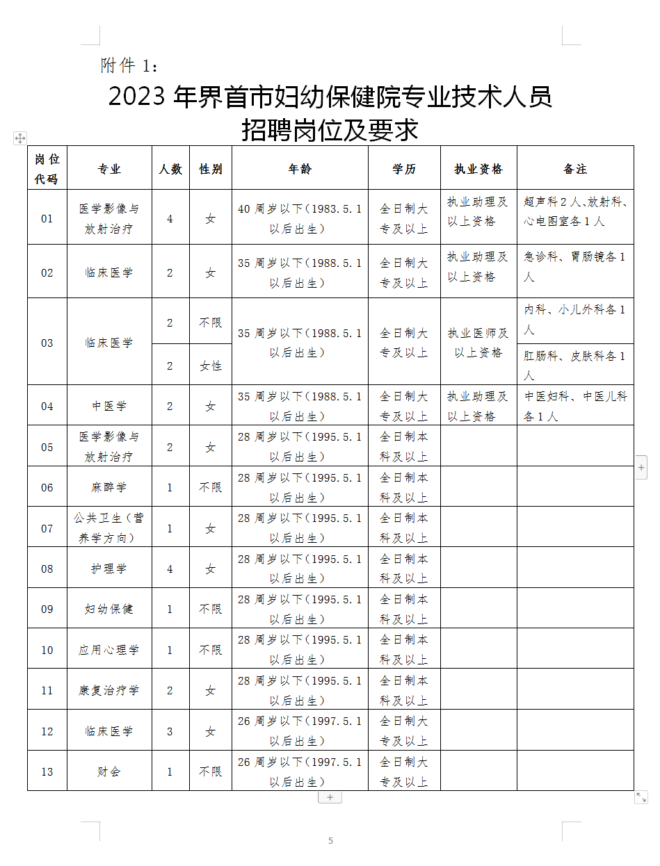 2023年阜陽(yáng)界首市婦幼保健院專業(yè)技術(shù)人員招聘公告