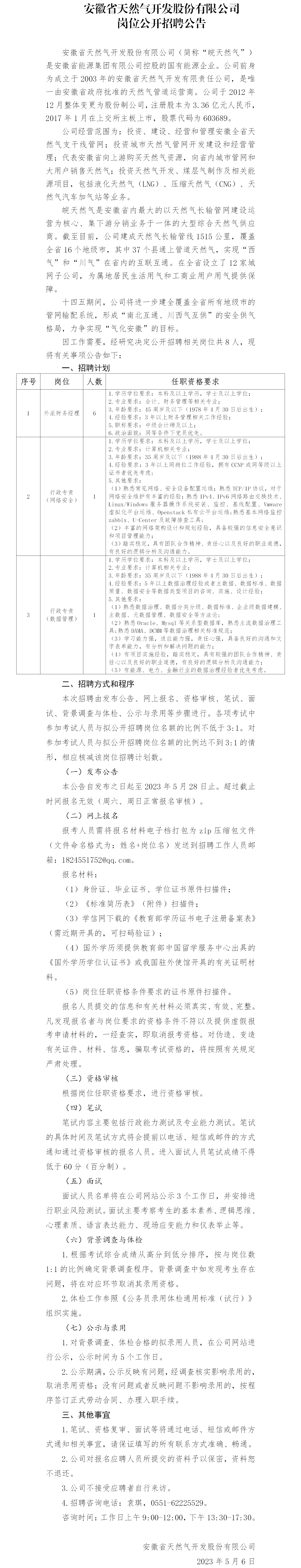 2023年安徽省天然氣開發(fā)股份有限公司崗位公開招聘公告