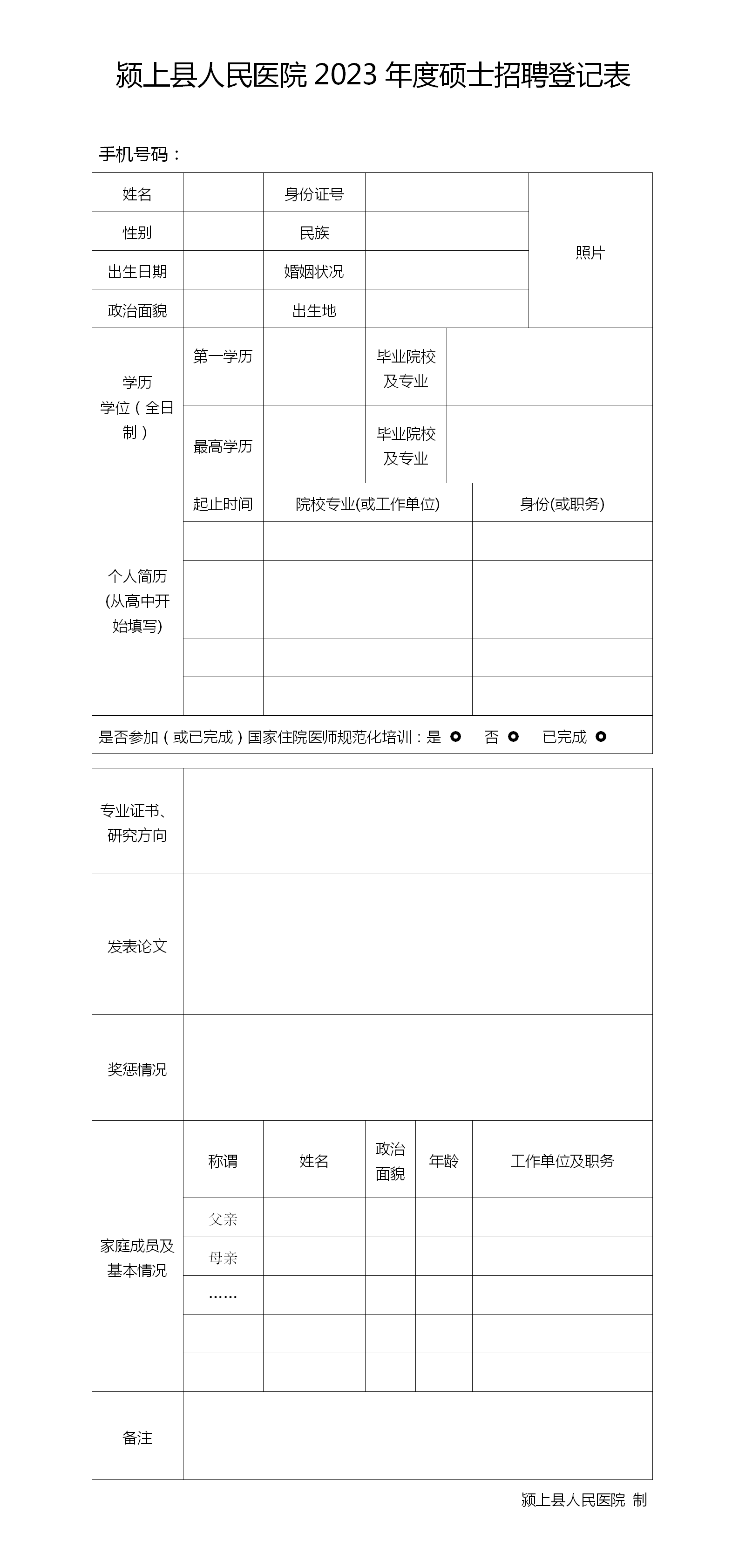 1.現場報名:潁上縣人民醫(yī)院門診樓6樓人力資源部提交報名材料。