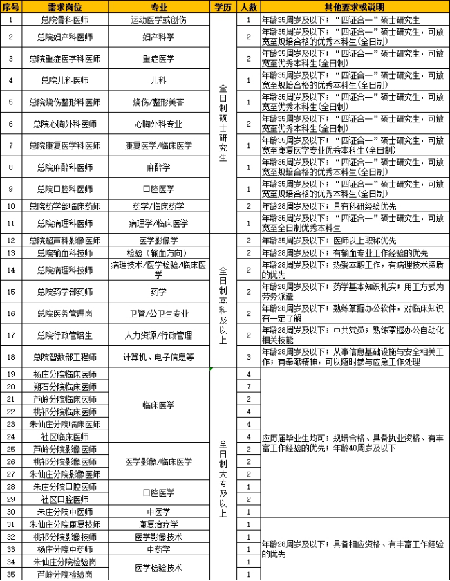 應(yīng)聘崗位要求的年齡以身份證為準(zhǔn),計(jì)算時(shí)間截止到2023年6月30日。招聘崗位及要求詳見《附表1.第三批招聘崗位需求表》。
