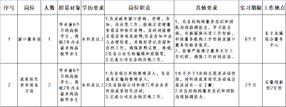 本次招聘最終解釋權(quán)歸安徽科技大市場建設(shè)運(yùn)營有限責(zé)任公司所有,若未有符合崗位能力要求的人員報(bào)名,則按照實(shí)際情況進(jìn)行崗位核減。