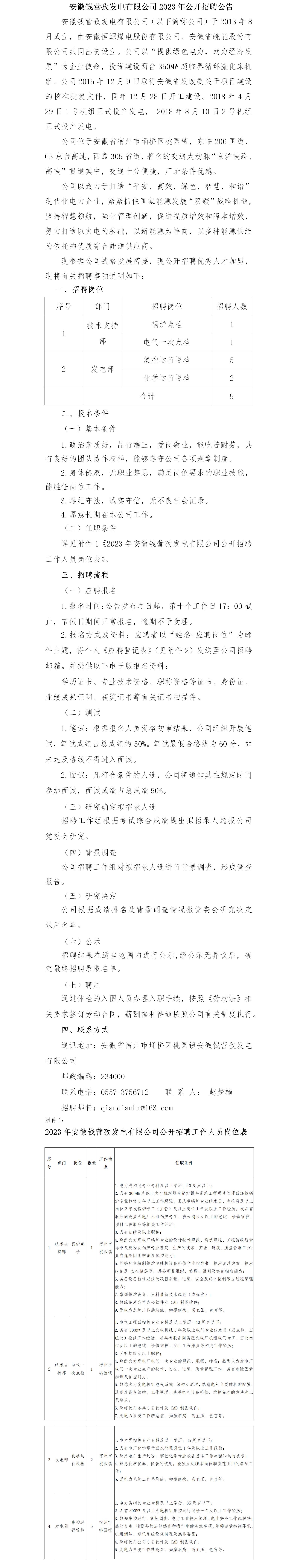 2023年宿州安徽錢營孜發(fā)電有限公司公開招聘公告