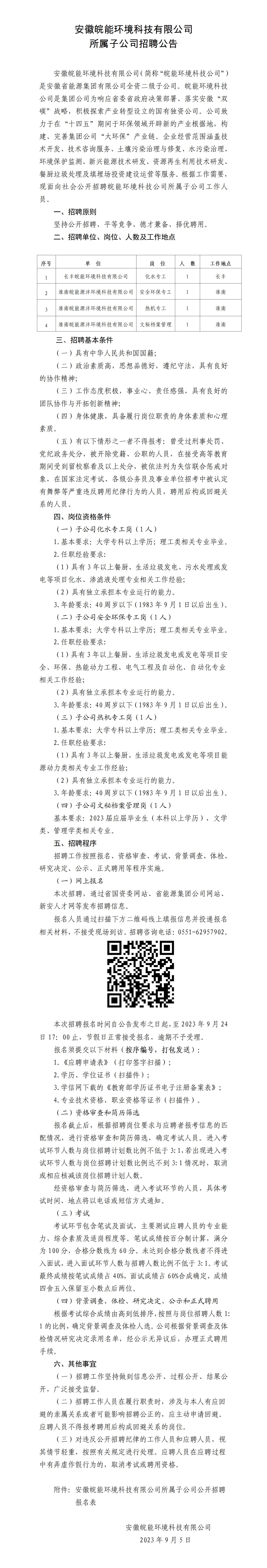 2023年安徽皖能環(huán)境科技有限公司所屬子公司招聘公告