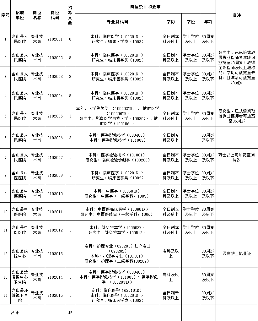 2021年下半年馬鞍山含山縣醫(yī)療衛(wèi)生事業(yè)單位公開招聘工作人員崗位計(jì)劃表