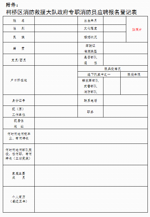 全區(qū)共招聘政府專職消防員50名,包含駕駛員10名、戰(zhàn)斗員34名,通信員6人。報(bào)名表見最后附件