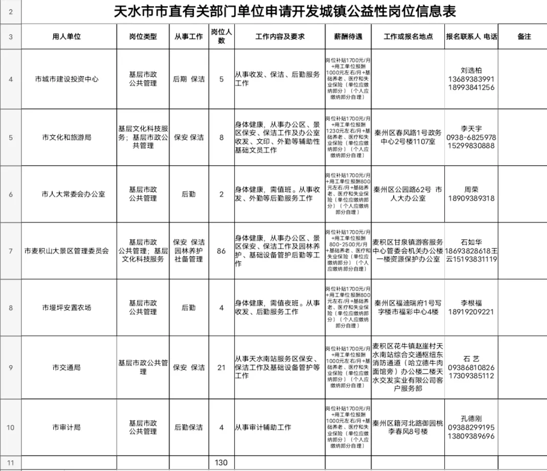 本次市本級計劃公開招聘城鎮(zhèn)公益性崗位130名。詳見附件1。
