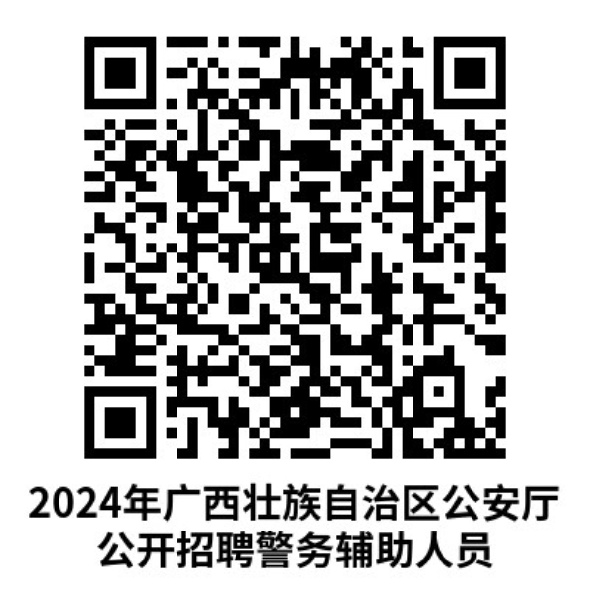 (二)報(bào)名方式:網(wǎng)上報(bào)名。登錄廣西壯族自治區(qū)公安廳政務(wù)網(wǎng)站(gat.gxzf.gov.cn)、廣西壯族自治區(qū)公安廳微信公眾號(hào)點(diǎn)擊鏈接或者掃描公告二維碼進(jìn)入“2024年廣西壯族自治區(qū)公安廳警務(wù)輔助人員招聘網(wǎng)上報(bào)名系統(tǒng)”(https://gx.bmpta.com/gongantingfj/index.aspx),選擇報(bào)考崗位、填寫(xiě)個(gè)人相關(guān)信息資料,上傳報(bào)名材料完成報(bào)名。