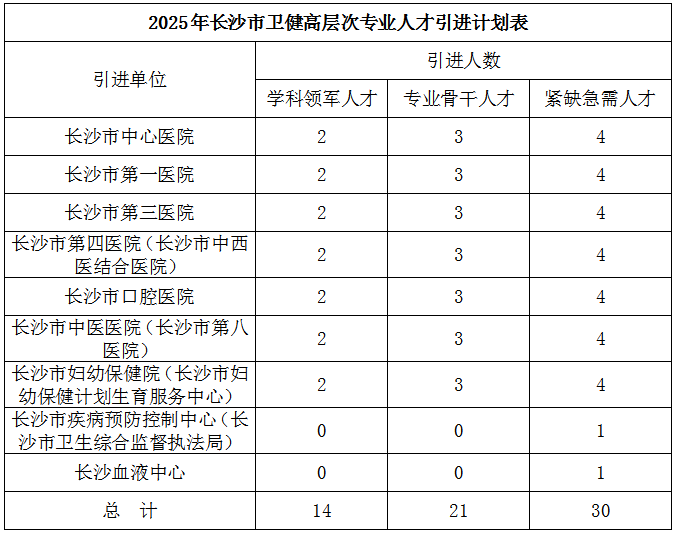 附件:2025年長沙市衛(wèi)生健康高層次專業(yè)人才引進(jìn)崗位表