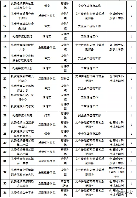 附件:扎賚特旗2021年第四批公益性崗位招聘計劃表
