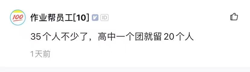 而另一個(gè)作業(yè)幫的員工表示,高中一個(gè)團(tuán)只留20人。
