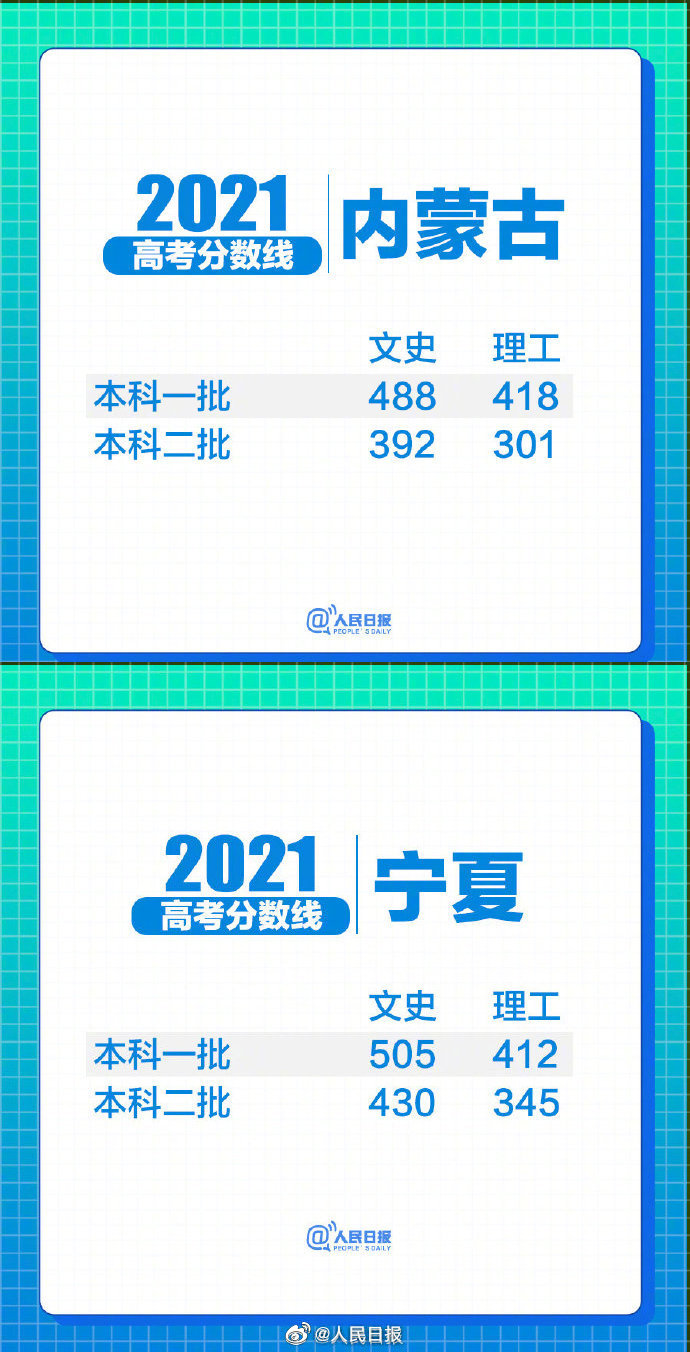 2021-06-26 17:23:14閱讀()人民日報31省區(qū)市2021高考分數(shù)線匯總,截至目前,31個省區(qū)市已陸續(xù)公布了2021年高考各批次錄取分數(shù)線↓↓祝大家都能進入自己理想的大學! ????