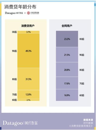 報(bào)告顯示,消費(fèi)貸年齡分布上,90后幾乎占據(jù)半壁江山,占比為49.3%;其次是80后,占比為31.5%。一組數(shù)字顯示,全國有1.75億名90后,其中只有13.4%的年輕人沒有負(fù)債,而86.6%的90后都接觸過信貸產(chǎn)品。