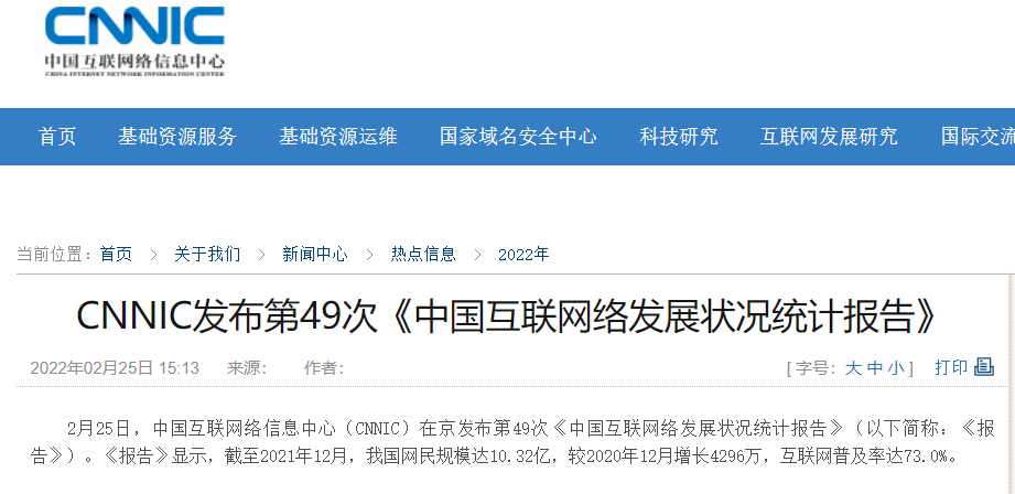 2022-02-26 02:18:23閱讀()中國(guó)互聯(lián)網(wǎng)絡(luò)信息中心