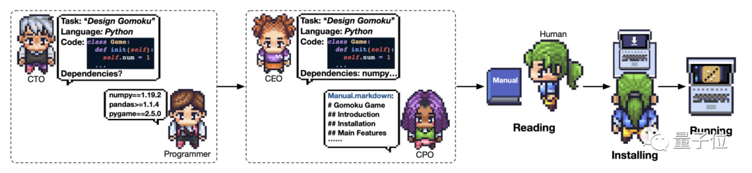 ChatDev利用AI扮演的角色,模擬了公司這一社會(huì)場(chǎng)景。